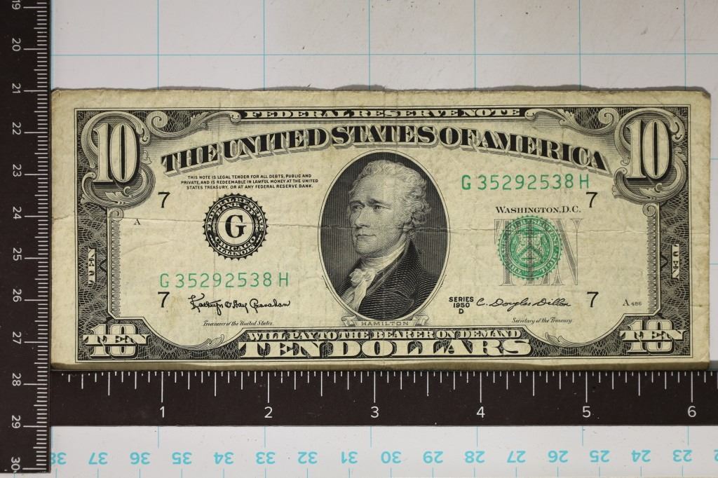 1950-D US $10 FRN, GREEN SEAL