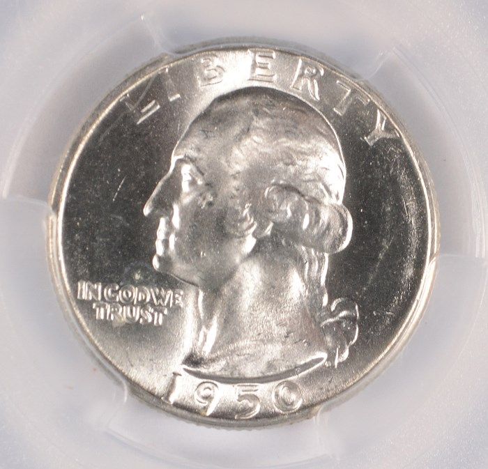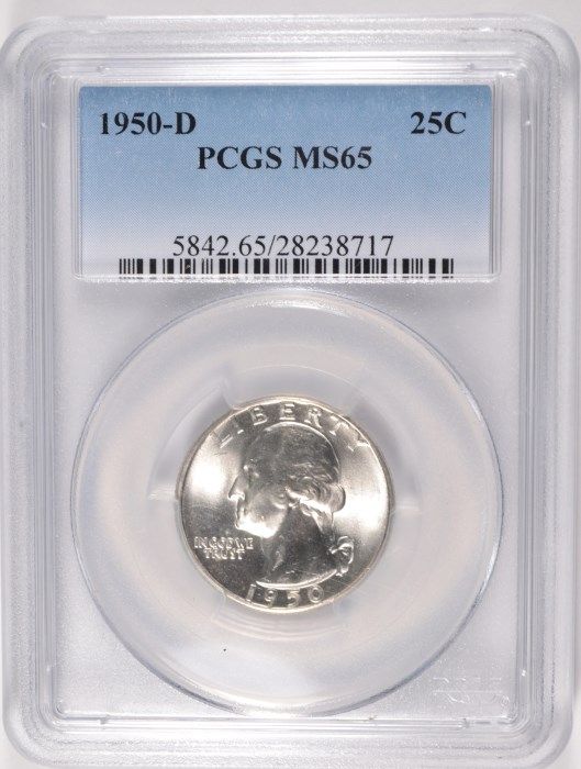 1950-D WASHINGTON QUARTER, PCGS MS-65 GEM WHITE