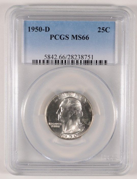 1950-D WASHINGTON QUARTER, PCGS MS-66 SUPERB WHITE