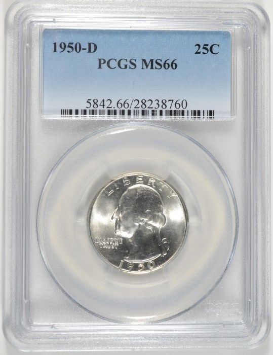 1950-D WASHINGTON QUARTER, PCGS MS-66 SUPERB WHITE