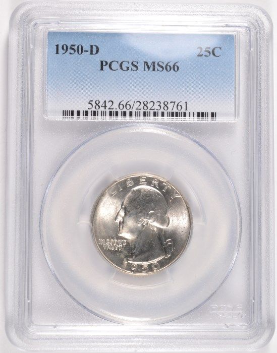 1950-D WASHINGTON QUARTER, PCGS MS-66 SUPERB WHITE