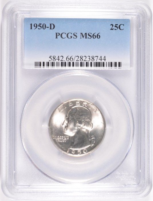 1950-D WASHINGTON QUARTER, PCGS MS-66 SUPERB WHITE