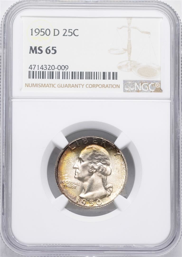 One 1950-D Washington Quarter Coin NGC MS65. NGC Certified.