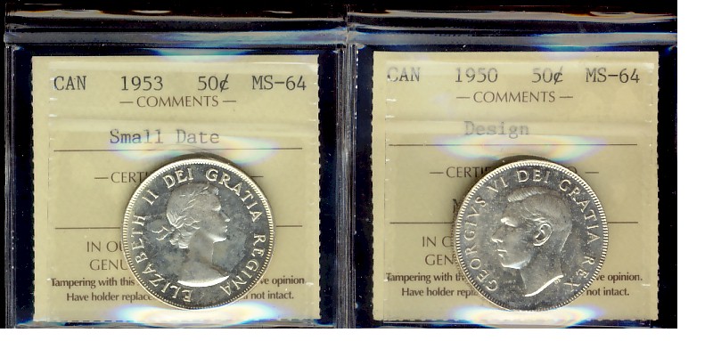 1950 Des & 1953 SD ICCS MS64. Lot of 2 coins.
