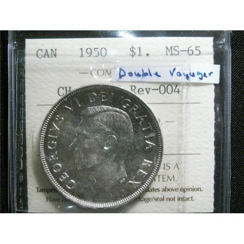 1950 "Double Voyageur variety" $1 ICCS MS65PQ CH # 1950-Rev-004. Light russet tones with full underlying luster.