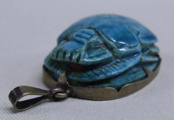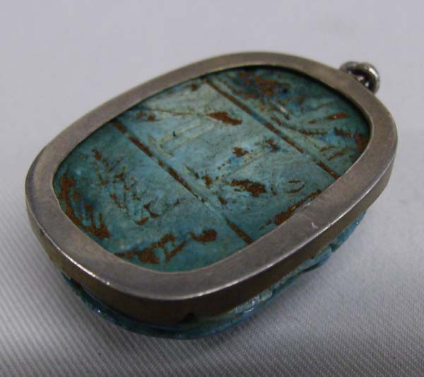 1950 Egyptian turquoise scarab Pendant in Silver Bezel Setting. Measures 2''Lx1''W. Buyers Pay Actual Shipping and Handling Charges(see terms and conditions for more information).