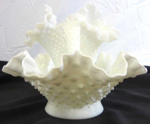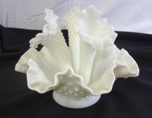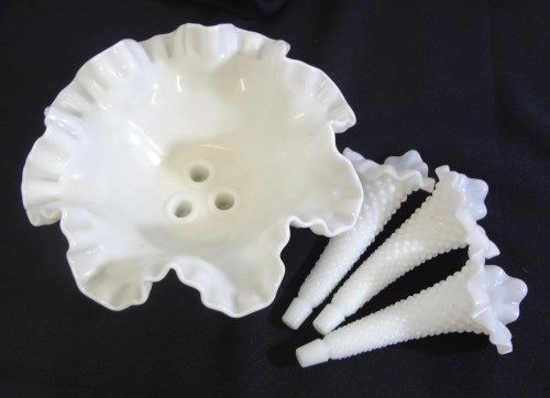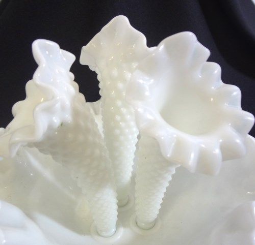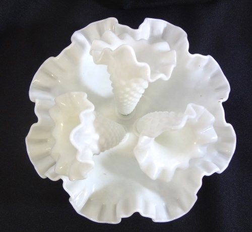 1950 FENTON WHITE MILK GLASS HOBNAIL 4 PC. MINIATURE EPERGNE SET
