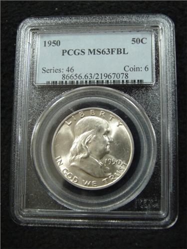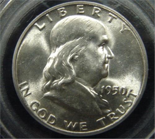 1950 FRANKLIN HALF DOLLAR. Graded by PCGS. MS 63.