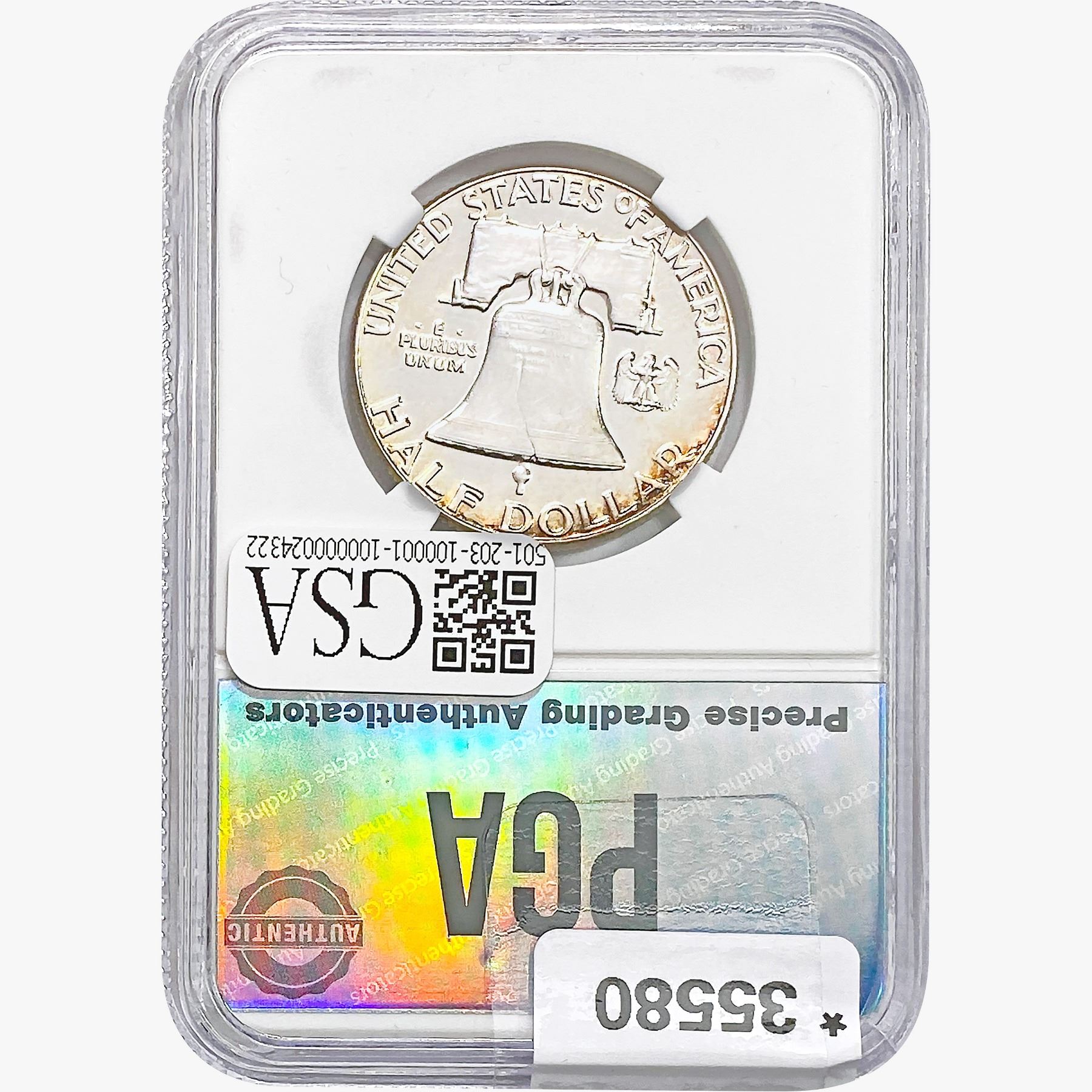 COINS AND CURRENCY LISTED IN GSA’S CATALOG AS GRADED AND ENCAPSULATED BY PCGS, NGC, ANACS, ICG, PCGS CURRENCY, PMG, PCGS BANKNOTE GRADING, CMC OR ANY OTHER THIRD-PARTY GRADING SERVICE ARE LIKEWISE SOLD “AS-IS” EXCEPT AS EXPRESSLY SET FORTH HEREIN. ALL THIRD-PARTY GRADING SERVICE GUARANTEES, INCLUDING AUTHENTICITY, ARE THE SOLE RESPONSIBILITY OF THE THIRD-PARTY GRADING SERVICE AND NOT WARRANTIES OR GUARANTEES OF GSA. BIDDERS SHOULD CONTACT THESE THIRD-PARTY GRADING SERVICES DIRECTLY WITH RESPECT TO ANY CLAIMS OR QUESTIONS THEY MAY HAVE CONCERNING THEIR GUARANTEES AND WARRANTIES. BIDDERS ACKNOWLEDGE AND AGREE THAT AUCTIONEER IS NOT BOUND BY OR LIABLE FOR ANY OPINION OR CERTIFICATION BY ANY THIRD-PARTY GRADING SERVICE. REMOVAL OF A PRODUCT FROM ITS PROTECTIVE CASING OR HOLDER OR ALTERATION OF ANY COIN HOLDER WAIVES ALL RIGHTS CONCERNING THE PRODUCT CONTAINED THEREIN.