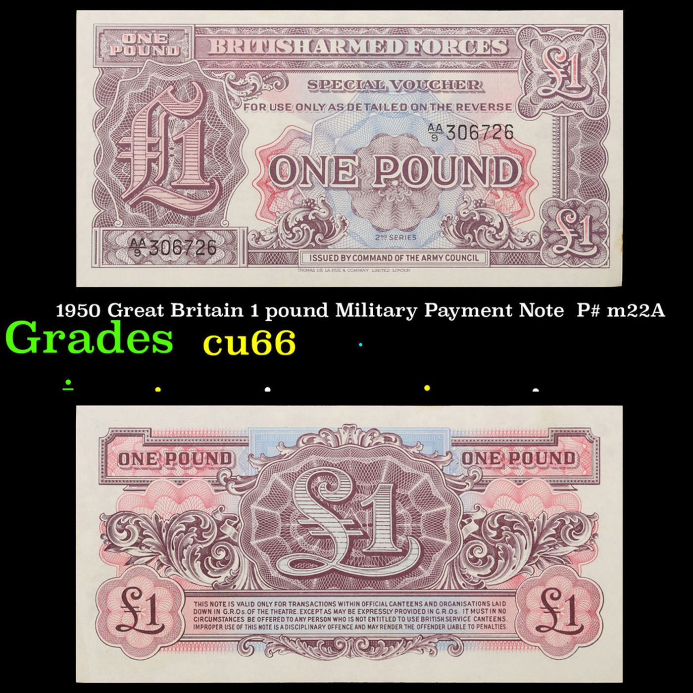 1950 Great Britain 1 pound Military Payment Note P# m22A Grades Gem+ CU.