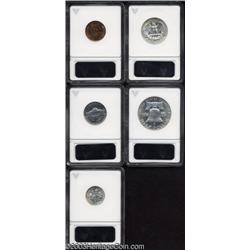 <table><tr><td><TABLE cellSpacing=0 cellPadding=0 width="100%" bgColor=#000000 border=0><TBODY> <TR><TD width="100%"><TABLE cellSpacing=1 cellPadding=3 width="100%" border=0><TBODY><TR><TD width="100%" bgColor=#79735c><FONT face=arial color=#ffffff size=3><B>Description</B> </FONT></TD></TR><TR><TD width="100%" bgColor=#ffffff><FONT face=arial size=2><B>1950 Proof Set PR63 to PR65 ANACS.</B></I> The set includes: <B>1950 1C Cent PR63 Red ANACS,</B></I> a faint fingerprint fragment on the obverse; <B>1950 Nickel PR64 5.5 Steps ANACS,</B></I> apricot and lilac hues, a crisp strike; <B>1950 Dime PR63 Full Bands ANACS,</B></I> silver-gray and gold colors; <B>1950 Quarter PR65 ANACS,</B></I> a lovely Gem with milky pearl color; and a <B>1950 Half Dollar PR64 ANACS,</B></I> sharply struck, well preserved, hints of golden-brown color along the margins.<BR><I>From the Holman Family Collection.</B></I> (5 coins) </FONT></TD></TR></TBODY></TABLE></TD></TR></TBODY></TABLE><BR><A name=PricesRealized></A><TABLE cellSpacing=0 cellPadding=0 width="100%" bgColor=#000000 border=0><TBODY><TR><TD width="100%"><TABLE cellSpacing=1 cellPadding=3 width="100%" border=0><TBODY><TR><TD width="100%" bgColor=#79735c><A name=PR><FONT face=arial color=#ffffff size=3><B>Previous Prices from Heritage Auctions</B> </FONT></A></TD></TR><TR><TD bgColor=#f6f6ed><TABLE cellSpacing=0 cellPadding=0 width="100%" border=1><TBODY><TR><TD align=middle width="33%"><B>Date</B></TD><TD align=middle width="33%"><B>Service</B></TD><TD align=middle width="33%"><B>Price</B></TD></TR><TR bgColor=whitesmoke><TD width="33%"><B>10/01/2002</B></TD><TD width="33%">ANACS</TD><TD width="33%">$18.40</TD></TR></TBODY></TABLE></TD></TR><TR><TD bgColor=#ffffff><FONT face=arial size=1 ?>PLEASE NOTE: All prices realized reflect the final hammer price PLUS the buyer's premium in auctions that charge a buyer's premium. Each item has a notation at the top of the listing indicating whether that lot included a buyer's premium. Example: A item that sells with a final hammer price of $100 and a 20% buyer's premium will display with a price realized of $120. All information listed is intended to be as accurate as possible, but errors are possible. Please use this guide carefully and inform us of any inaccuracies. </FONT></TD></TR></TBODY></TABLE></TD></TR></TBODY></TABLE><BR><TABLE cellSpacing=0 cellPadding=0 width="100%" bgColor=#000000 border=0><TBODY><TR><TD width="100%"><TABLE cellSpacing=1 cellPadding=3 width="100%" border=0><TBODY><TR><TD width="100%" bgColor=#79735c colSpan=6><FONT face=arial color=#ffffff size=3><B>Price Guide*</B> </FONT></TD></TR><TR bgColor=#f6f6ed><TD align=middle><B>Grade</B> </TD><TD align=middle><B>Coin World<BR>(Trends)</B> </TD><TD align=middle><B>Numismedia<BR>Retail</B> </TD><TD align=middle><B>Numismedia<BR>Wholesale</B> </TD><TD align=middle><B>Coin<BR>Universe</B> </TD><TD align=middle><B>Heritage<BR>Value Index</B> </TD></TR><TR><TD colSpan=6>No Pricing Data Available</TD></TR><TR bgColor=#ffffff><TD colSpan=6><FONT size=1>*All information listed is intended to be as accurate as possible, but errors are possible. No item may be returned or refused based on this information which is provided as a service to our customers. You should contact each pricing source directly to determine the accuracy of this information. </FONT></TD></TR></TBODY></TABLE></TD></TR></TBODY></TABLE><BR><TABLE cellSpacing=0 cellPadding=0 width="100%" bgColor=#000000 border=0><TBODY><TR><TD width="100%"><TABLE cellSpacing=1 cellPadding=3 width="100%" border=0><TBODY><TR><TD width="100%" bgColor=#79735c><FONT face=arial color=#ffffff size=3><B>Population Guide</B> </FONT></TD></TR><TR bgColor=#ffffff><TD align=middle><!-- Begin Output of Population Grid--><TABLE cellSpacing=0 cellPadding=0 width="100%" border=0><TBODY><TR><TD vAlign=center><TABLE cellSpacing=0 width="100%" border=1 cellsadding="3"><TBODY><TR><TD vAlign=center><TABLE cellSpacing=0 cellPadding=3 width="100%" border=1><TBODY><TR><TD vAlign=center align=middle bgColor=#f0f1e8 colSpan=2 <CENTER><FONT face=Arial size=2><B>PCGS Pop </B></FONT><CENTER></CENTER></TD><TD vAlign=center align=middle bgColor=#f0f1e8 colSpan=2><CENTER><FONT face=Arial size=2><B>NGC Pop</B></CENTER></FONT></TD></TR><TR><TD vAlign=center><FONT face=Arial size=2>(63)</FONT> </TD><TD vAlign=center align=right><FONT face=Arial size=2>14</FONT> </TD><TD vAlign=center><FONT face=Arial size=2>(63)</FONT> </TD><TD vAlign=center align=right><FONT face=Arial size=2>3</FONT> </TD></TR><TR><TD vAlign=center><FONT face=Arial size=2>(>63)</FONT> </TD><TD vAlign=center align=right><FONT face=Arial size=2>772</FONT> </TD><TD vAlign=center><FONT face=Arial size=2>(>63)</FONT> </TD><TD vAlign=center align=right><FONT face=Arial size=2>288</FONT> </TD></TR></TBODY></TABLE></TD></TR></TBODY></TABLE></TD></TR></TBODY></TABLE><!-- End Output of Population Grid--></TD></TR></TBODY></TABLE></TD></TR></TBODY></TABLE><BR><TABLE cellSpacing=0 cellPadding=0 width="100%" bgColor=#000000 border=0><TBODY><TR> 5 coins Important notice: Heritage usually auctions material at the rate of 200-250 lots per hour. On some occasions eBay Live bid software or the Internet may not be able to keep up with the pace of the auction. We recommend placing a realistic absentee bid now as insurance to avoid disappointment. Occasionally the auctioneer may eliminate or reject an eBay Live bid, and the auctioneer may also reopen a lot after the close of the eBay live bidding (usually because we missed an audience bid), and may reject your bid even if it shows you as the winning bidder. By bidding via eBay Live, you agree that Heritage may award the lot to another bidder at its sole discretion under the circumstances described above or any other reasonable circumstances. Also please note that all Heritage lots purchased through eBay Live carry a 20% Buyer's Premium. Please make sure you read the Terms and Conditions before you bid.</TD></TR></TBODY></TABLE></TD></T