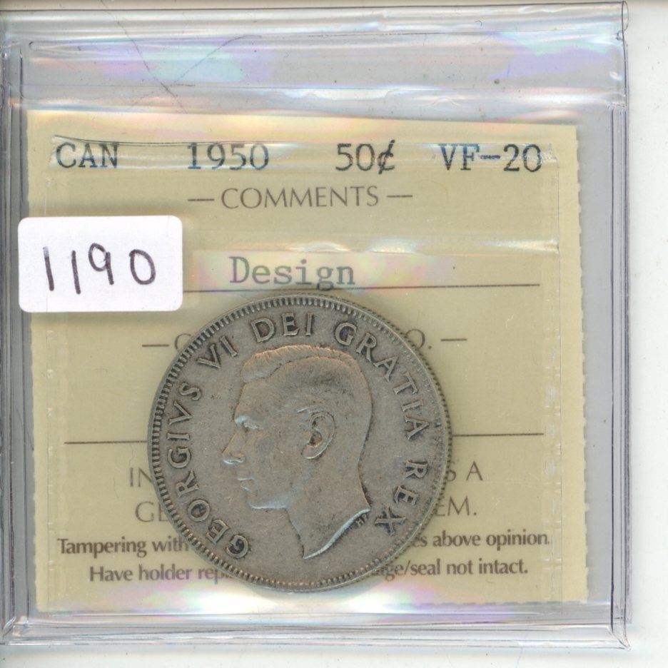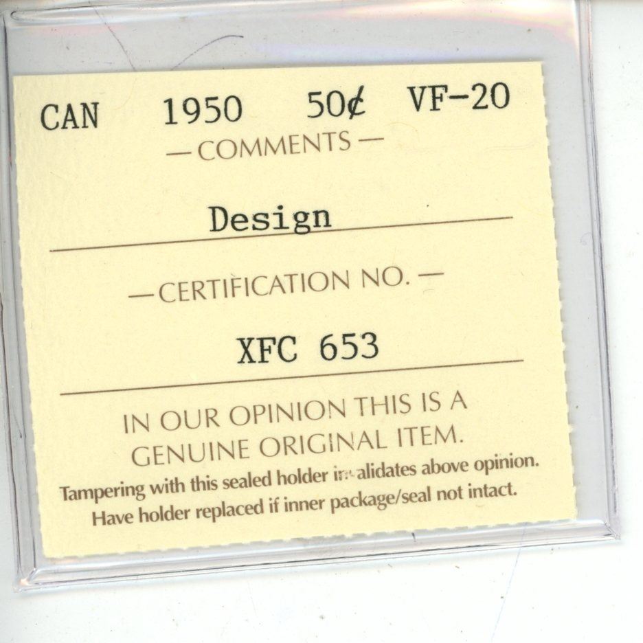 1950 ICCS Graded - Canadian Fifty Cent - Design - VF20