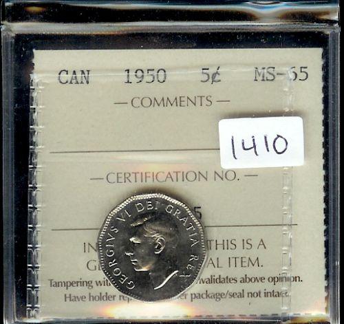 1950 ICCS MS65, Fully struck with amazing lustre. A very nice and superior example. Should sell over estimate.