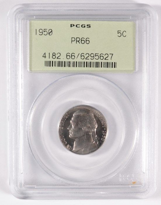 1950 JEFFERSON NICKEL, PCGS PROOF-66 GREEN LABEL