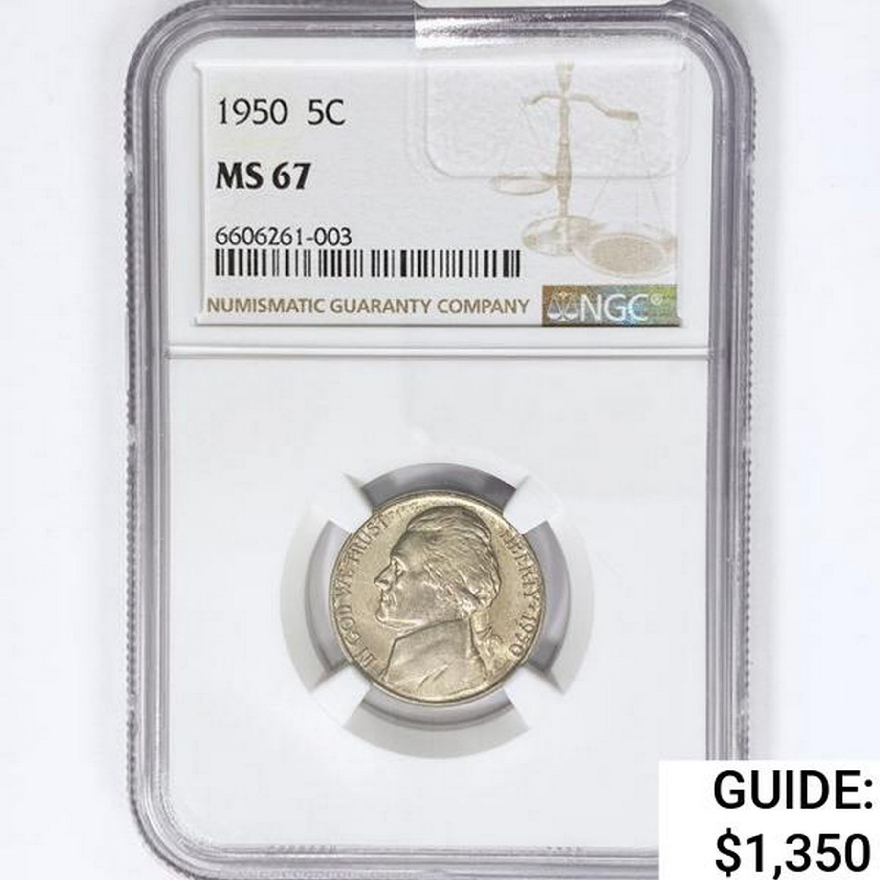 1950 Jefferson Nickel NGC MS67
