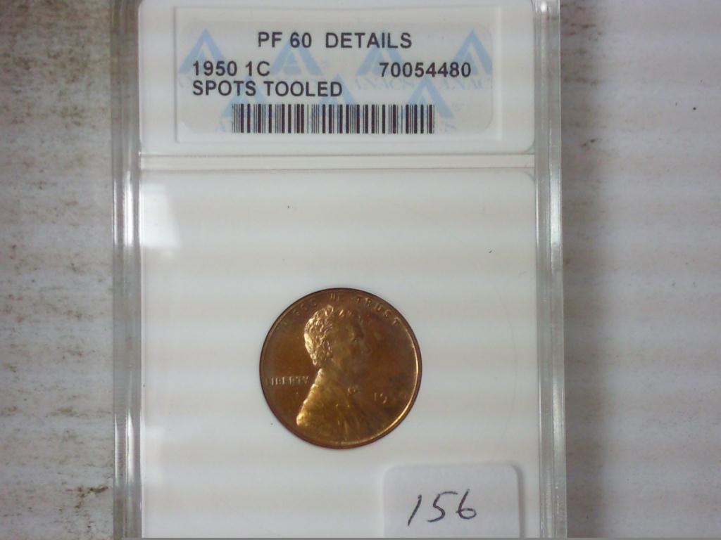 1950 LINCOLN CENT ANACS PF60 DETAILS, SPOTS TOOLED