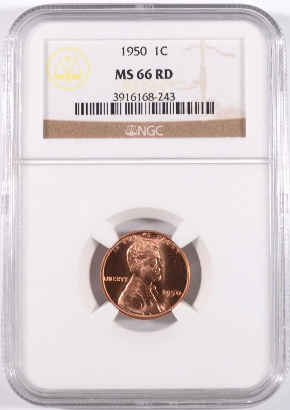 1950 LINCOLN CENT, NGC MS-66 RED, RARE!