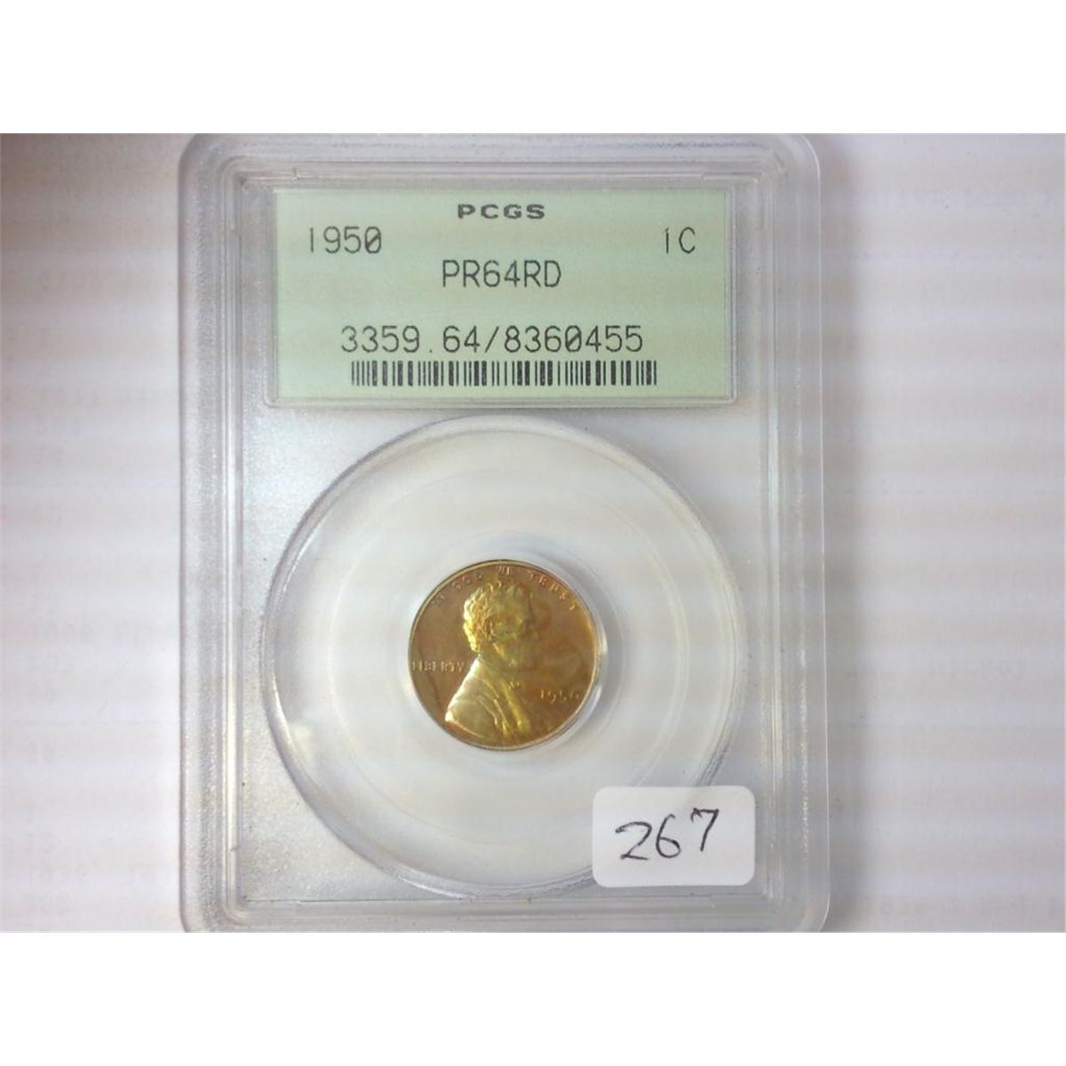 1950 LINCOLN CENT PCGS PR64 RD