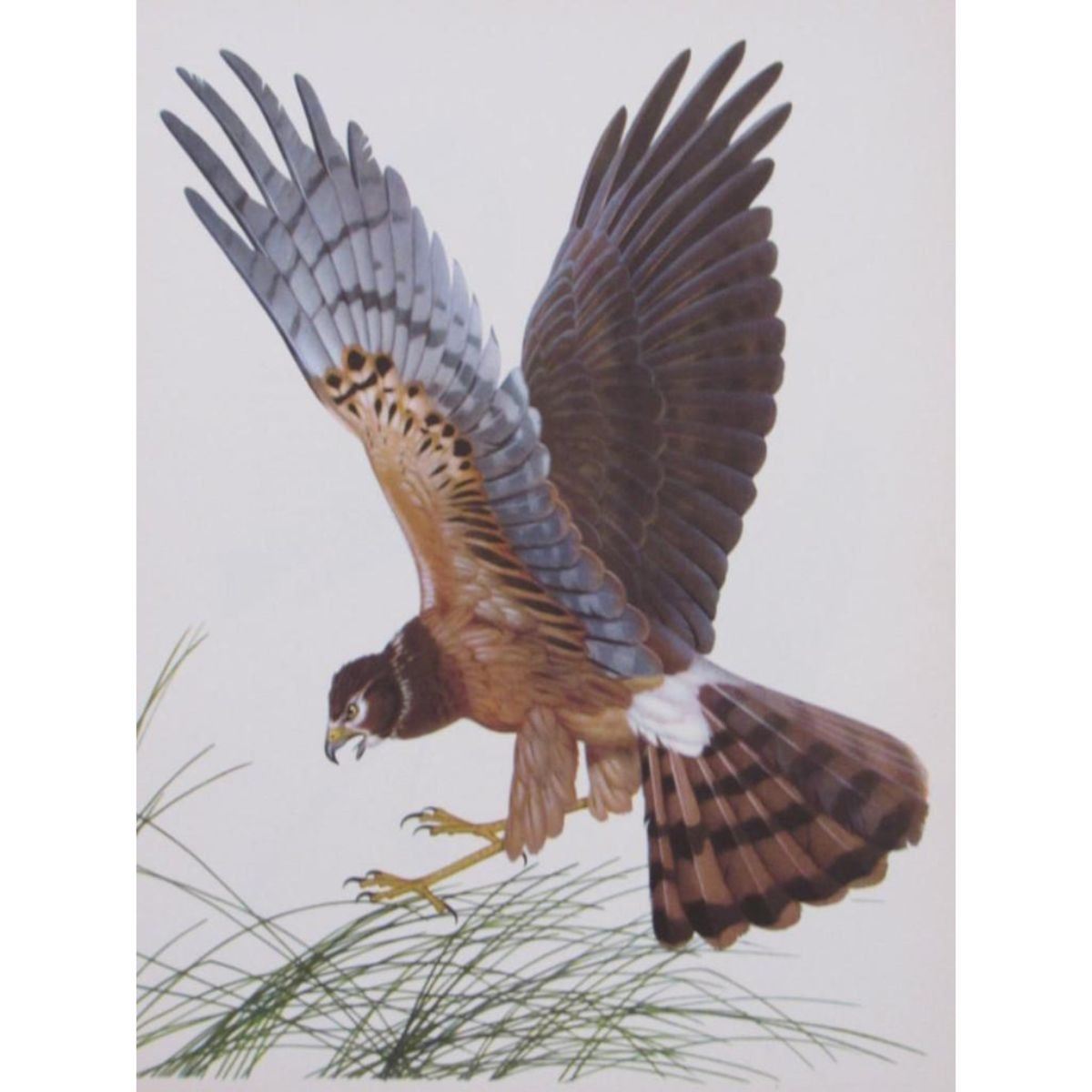 Original 1950 book plate lithograph, Marsh Hawk, by Athos Menaboni (Italy, Georgia 1895 - 1990 ) from "Menaboni's Birds". Approx 9" X12". Comes with 11" X 14" mat. Considered by some the Audubon of the 20th Century, Athos Menaboni was born in Italy but lived most of his life in the southern United States (Georgia). He is known for his beautifully detailed and lifelike renderings of birds but was also an accomplished painter of diverse subjects including botanicals, seascapes, landscapes & mosaics. During his sixty-year career he is credited with painting over 150 species of American birds. Â