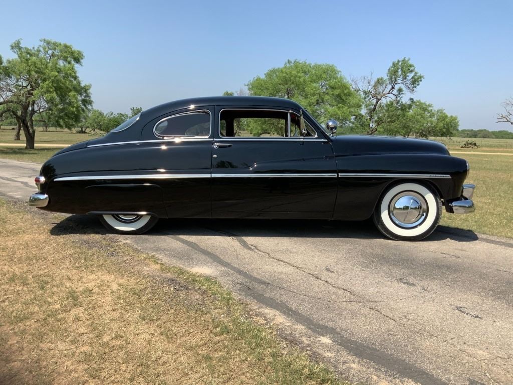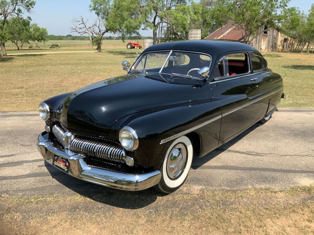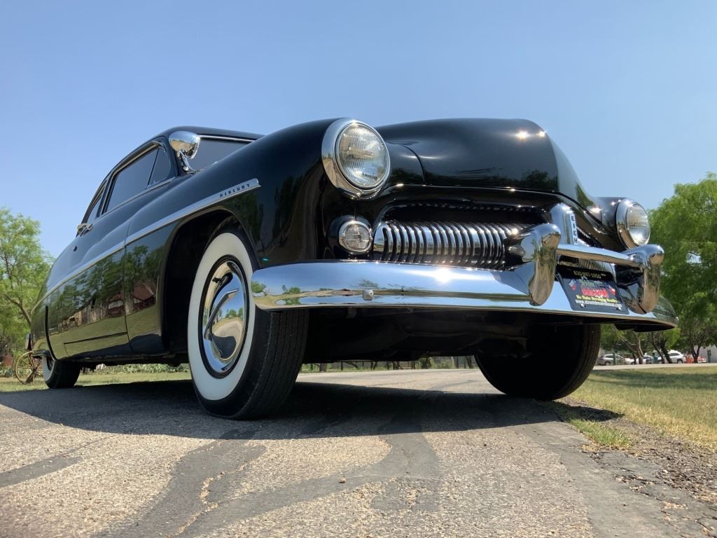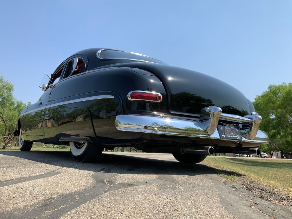 1950 Mercury Eight 305ci V8 Automatic PS PB Vintage AC Very Nice 50-6521C. This 1950 Mercury Eight has a 305ci V8 out of a '91 Firebird and a 700R4 automatic transmission. This classic sled has also been upgraded to power brakes(Front Disc) and power steering, as well as a Vintage Air system. They have changed the front clip out with a '74 Nova. Some other modifications include a Ford 9" Rear, Posies springs. powder coated '56 Chevy steel wheels, and Coker Radial Tires(look like Bias-ply). The car has also been loaded with Dynamat for a nice quite ride.