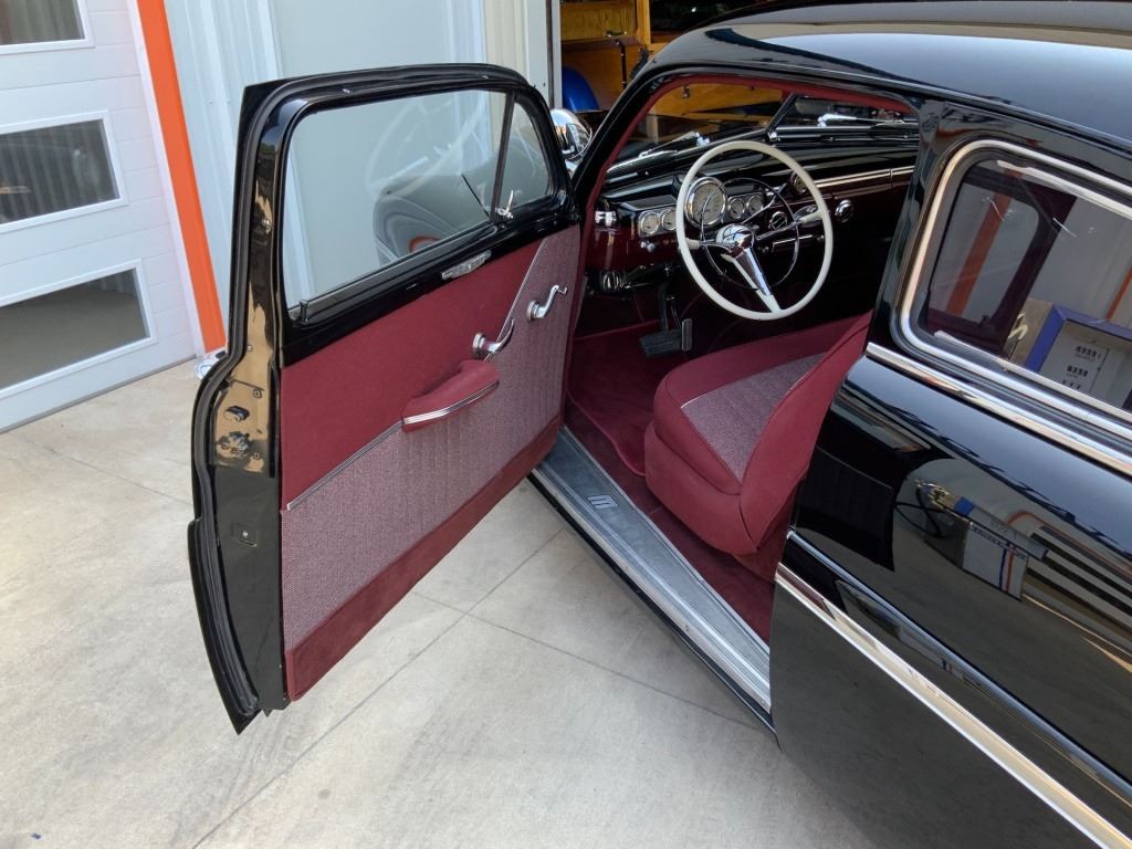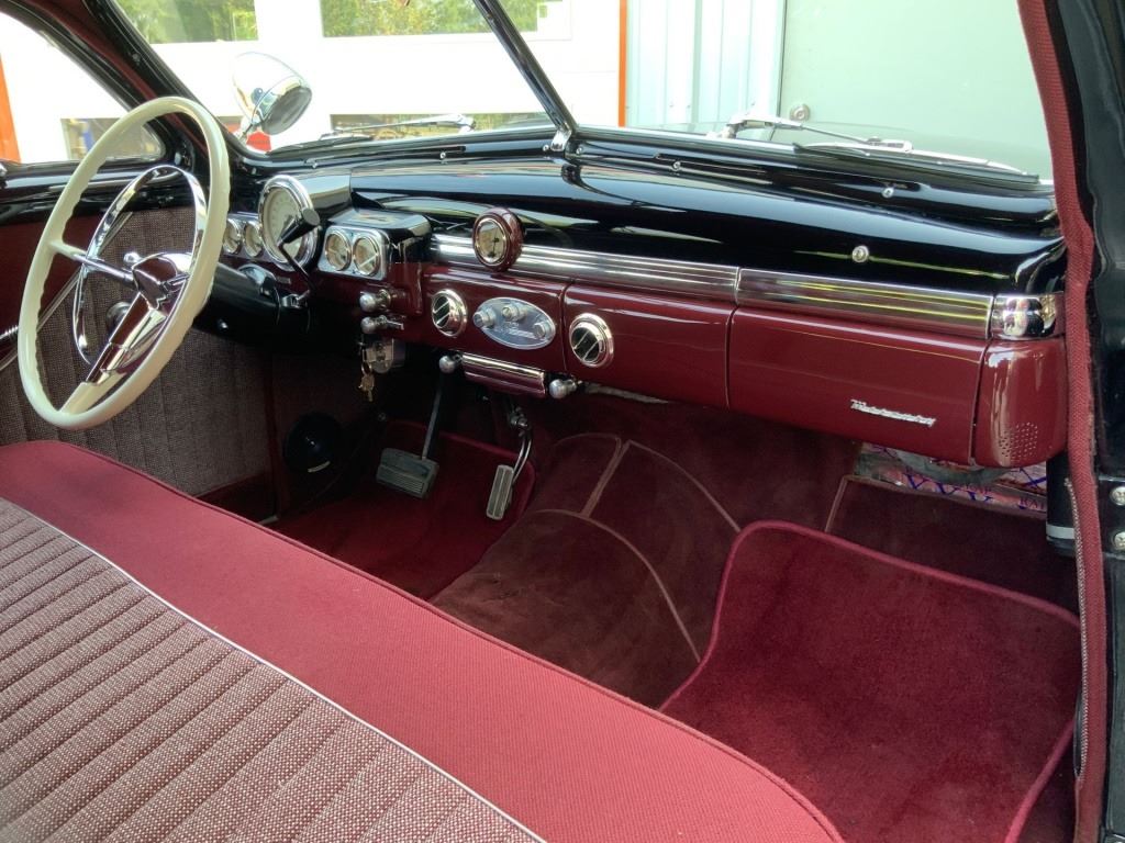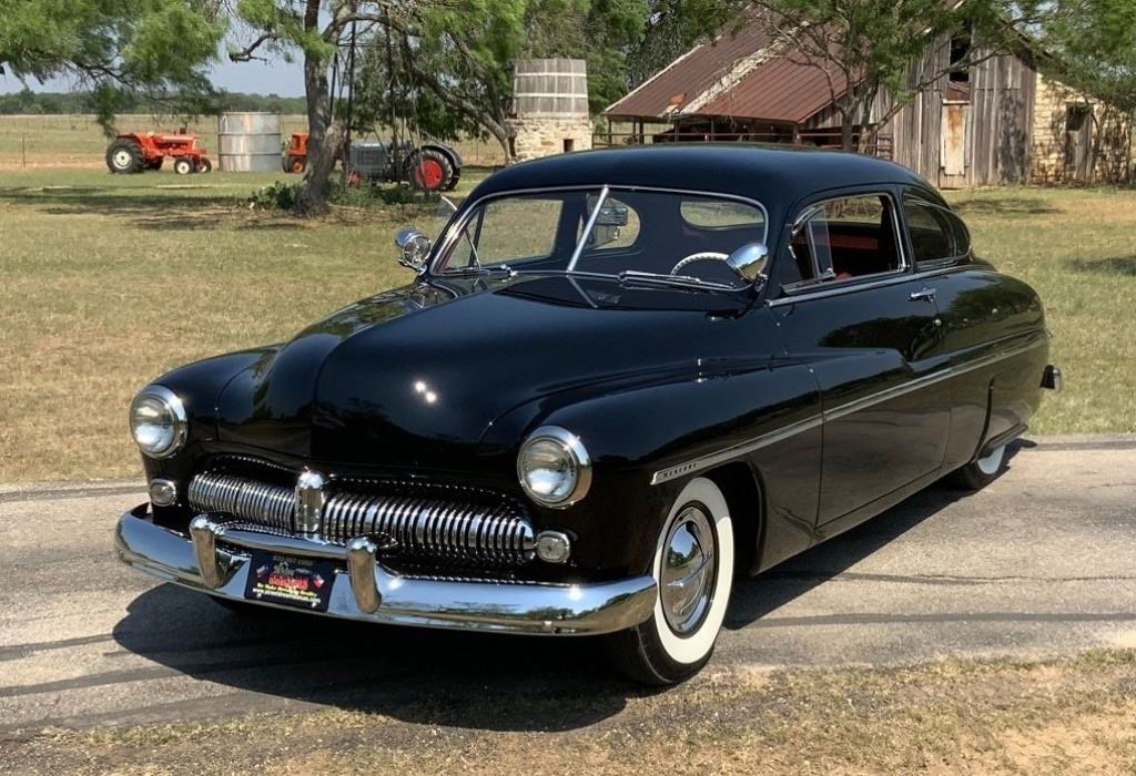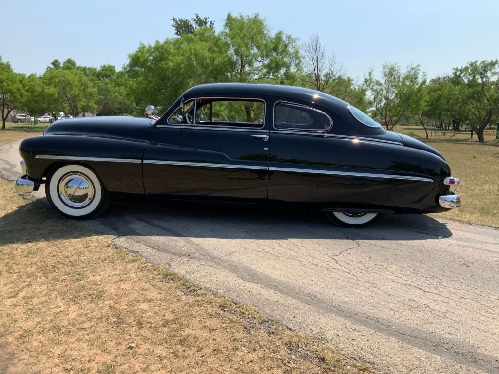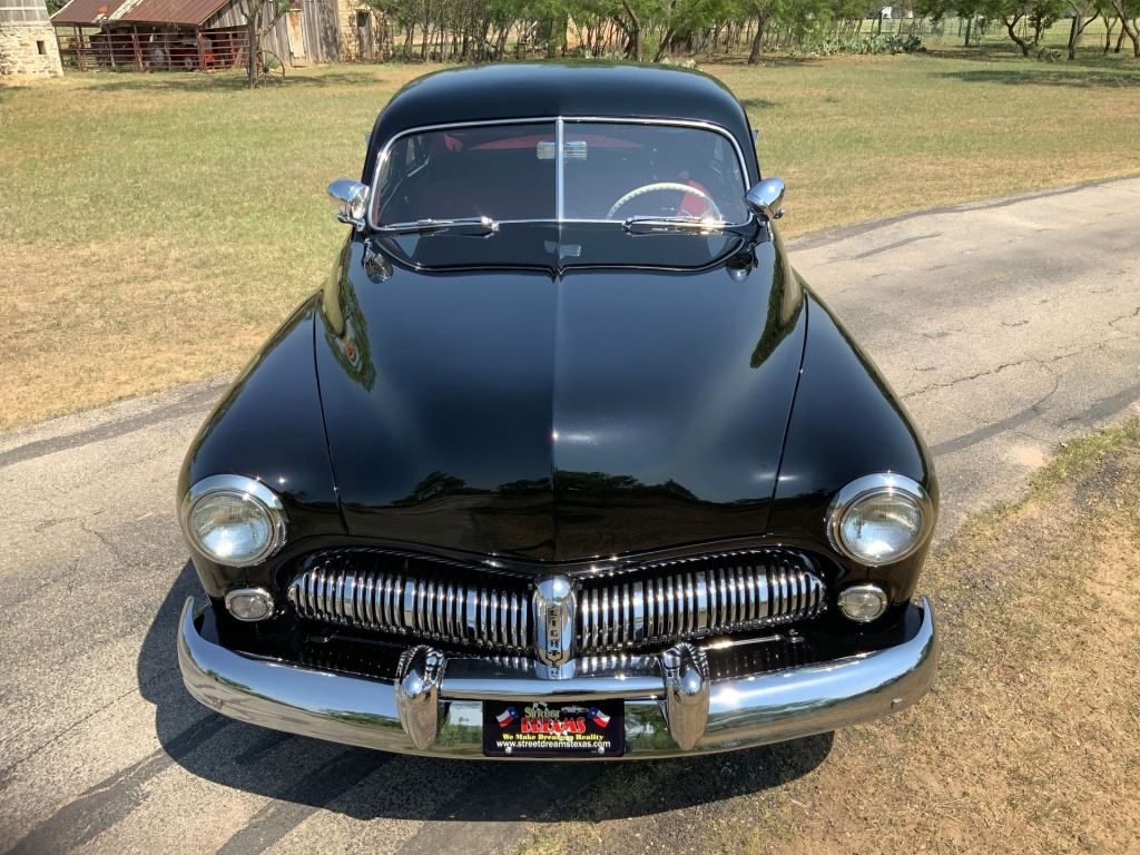 1950 Mercury Eight 305ci V8 Automatic PS PB Vintage AC Very Nice 50-6521C. This 1950 Mercury Eight has a 305ci V8 out of a '91 Firebird and a 700R4 automatic transmission. This classic sled has also been upgraded to power brakes(Front Disc) and power steering, as well as a Vintage Air system. They have changed the front clip out with a '74 Nova. Some other modifications include a Ford 9" Rear, Posies springs. powder coated '56 Chevy steel wheels, and Coker Radial Tires(look like Bias-ply). The car has also been loaded with Dynamat for a nice quite ride.