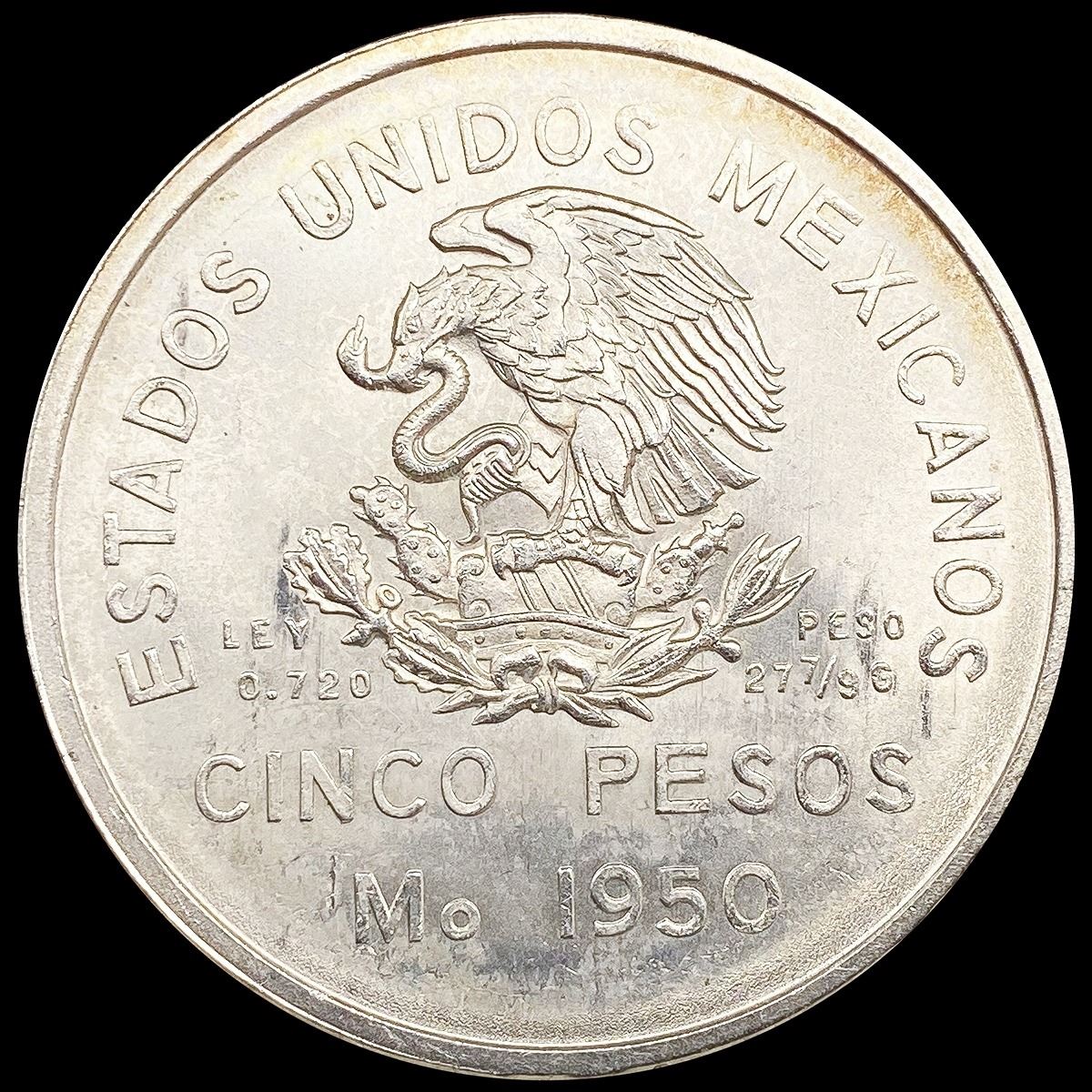 1950 Mexico Silver 5 Pesos UNCIRCULATED