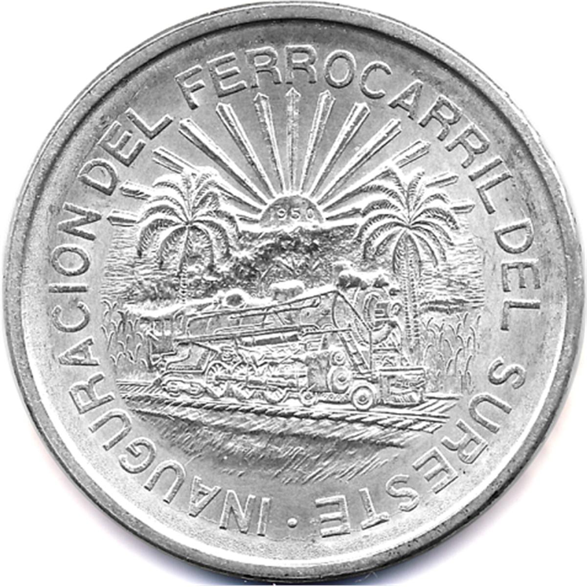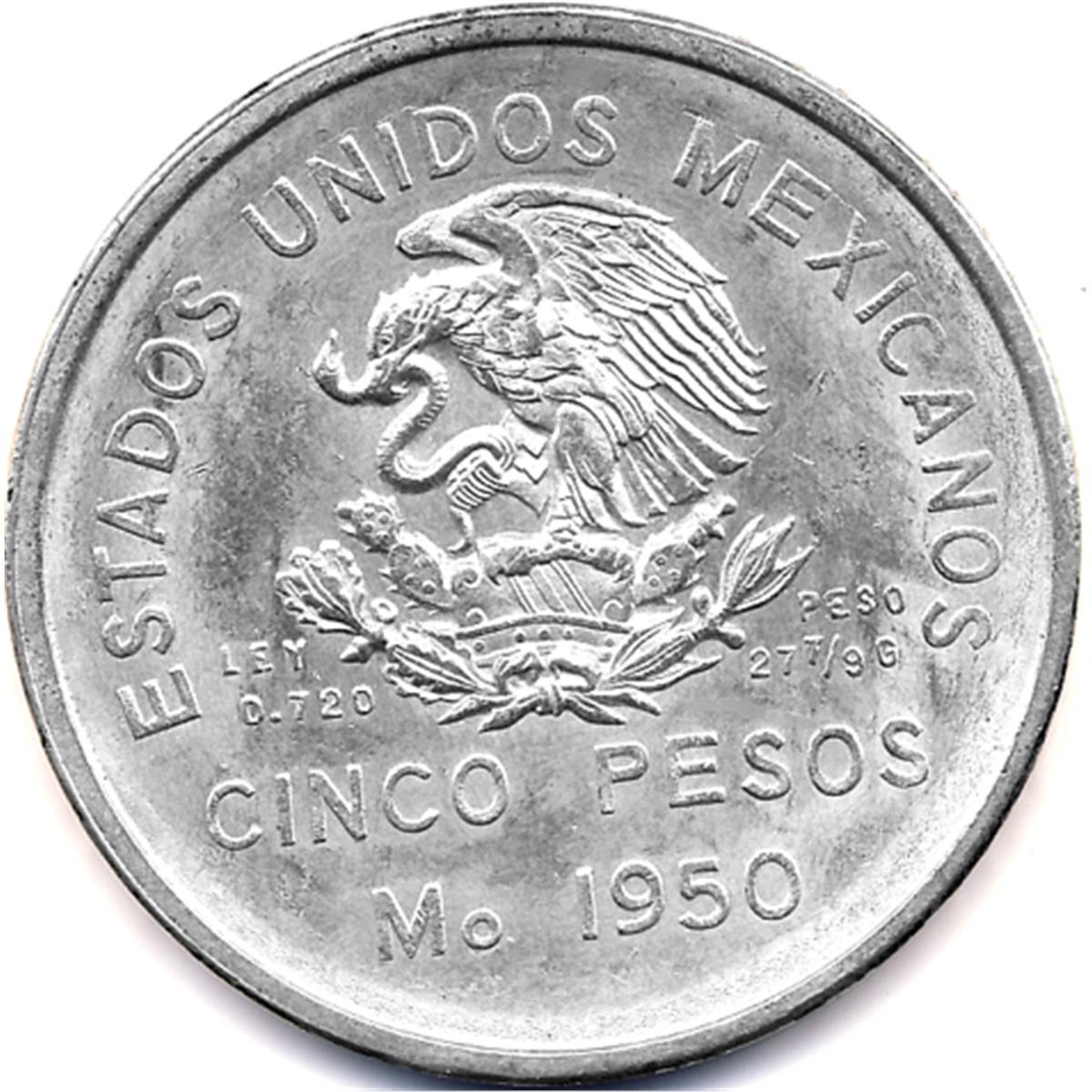 1950-Mo MEXICO SILVER 5 PESOS RAILROAD-MS65