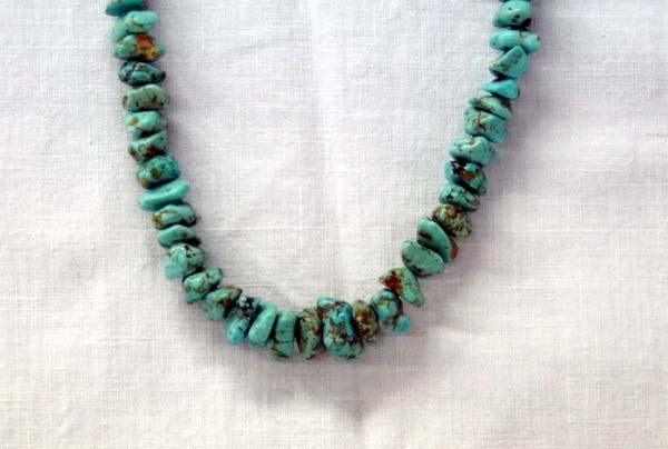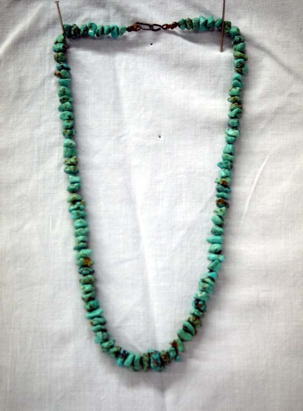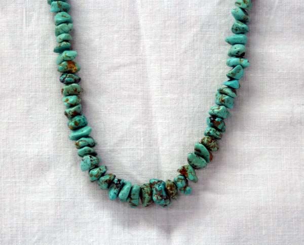 Beautiful 1950's Native American Navajo Natural Turquoise Nugget Necklace, Bisbee Blue Turquoise, largest nugget measures .25''W