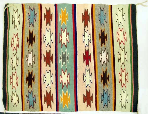 1950 Navajo Pastel Butterfly Textile Rug, measures 30''L x 24''W, 4 cornered tassels intact, fabulous colors