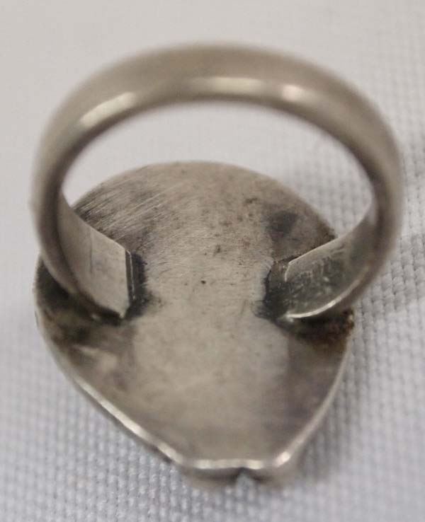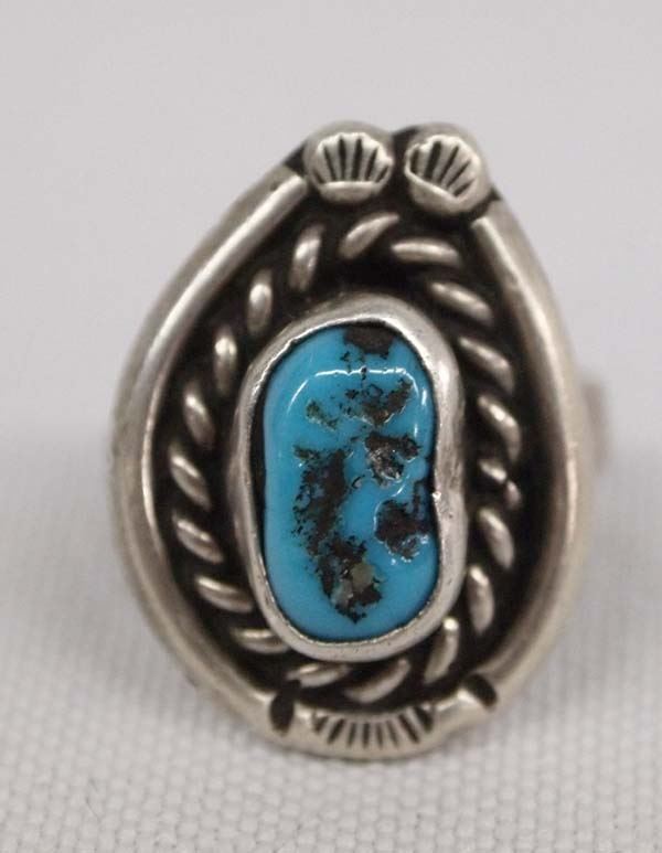 1950 Native American Navajo Sterling Silver Kingman Turquoise Ring, Size 4, measures .75''L, 6.8g in total wt.
