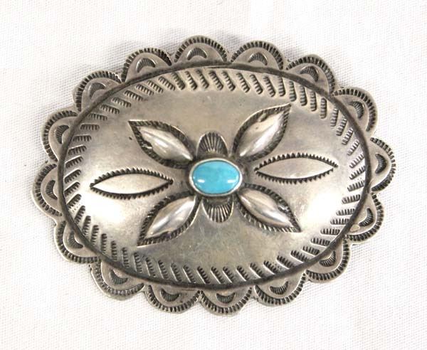 1950 Native American Navajo Sterling Silver Concho Pin, measures 1.75'' x 2.5'', beautiful hand stamped details