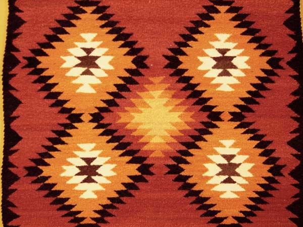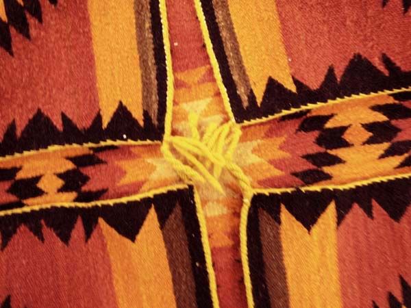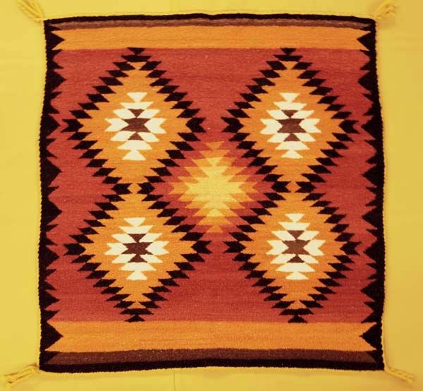 1950 Navajo Traditional Serrated Diamond Rug, measures 30'' x 30'', 4 cornered tassels intact, stunning warm colors