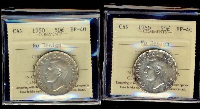 1950 No Des ICCS EF40. Lot of 2 coins.