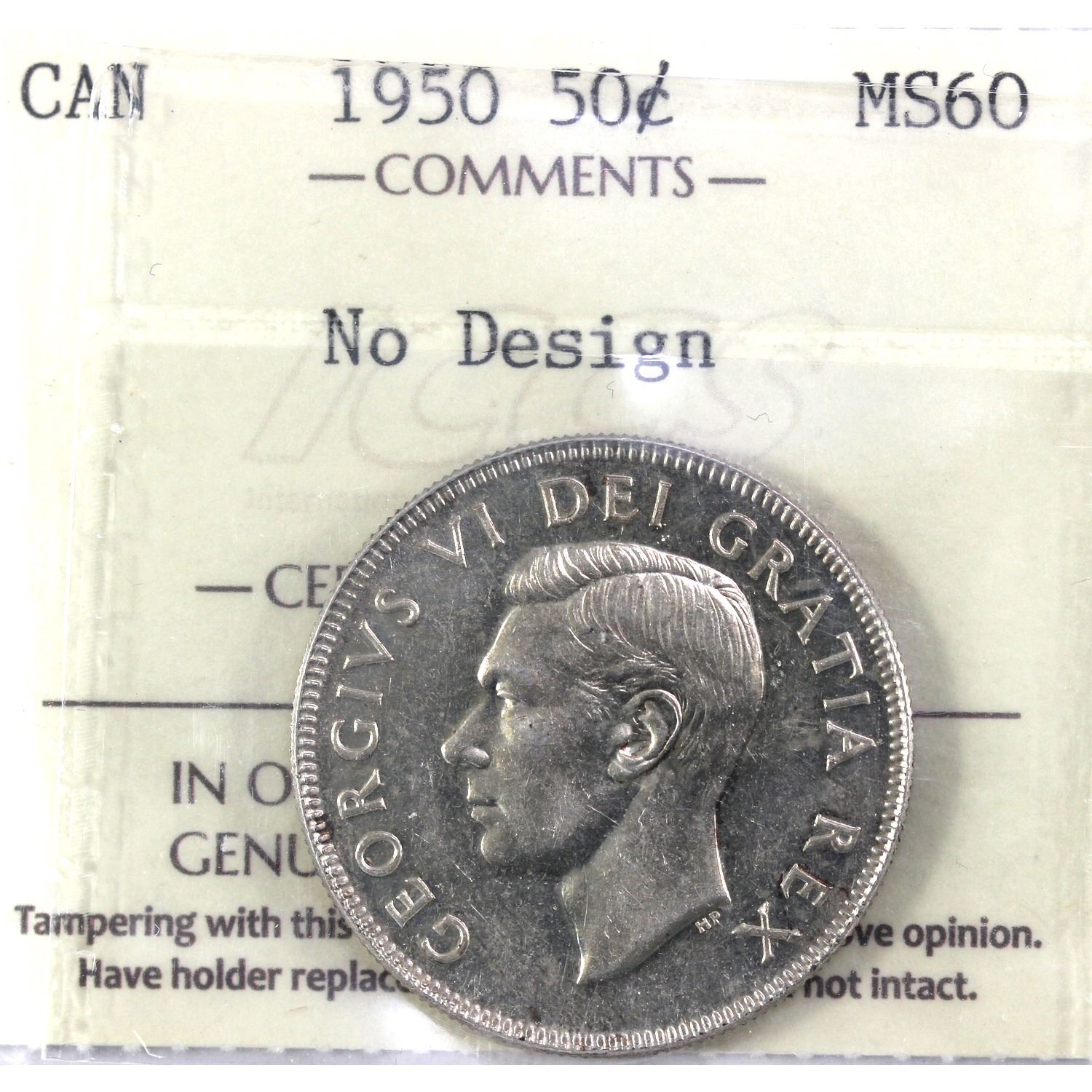 1950 No Design, Canada 50-cent ICCS Certified MS-60