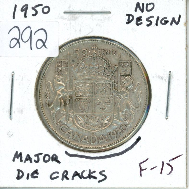 1950 No Design in Zero Silver 50 Cents. Coin displays major Die Cracks around the reverse. F-15. Scarce.