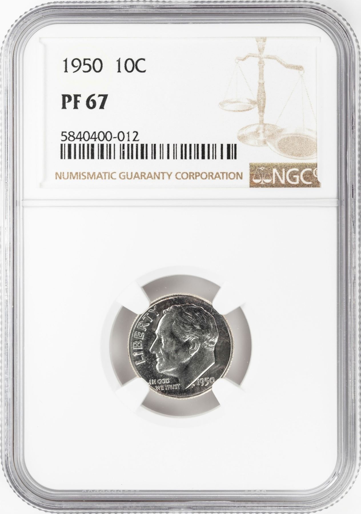 One 1950 Proof Roosevelt Dime Coin NGC PF67.