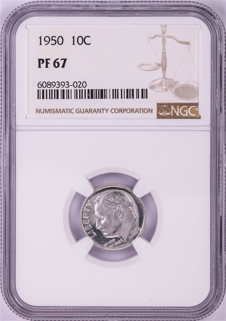 One 1950 Proof Roosevelt Dime Coin NGC PF67. NGC Certified.