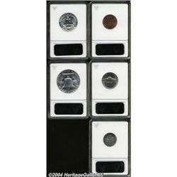 <B>1950 Proof Set PR64 to PR66 ANACS.</B></I> The set includes: <B>Cent PR65 Red,</B></I> a beautiful ruby-red Gem; <B>Nickel PR66 6 Steps,</B></I> apricot and steel-blue colors, a splendid specimen; <B>Dime PR66,</B></I> speckled blue-green and gold borders, brilliant centers, a lengthy lintmark (as made) on the lower reverse; <B>Quarter PR65,</B></I> blushes of golden-brown and cream-gray patina; and a <B>Half Dollar PR64,</B></I> honey-gold and sky-blue colors, an attractive near-Gem. 5 Coins <BR><BR><B>Important notice:</B> Heritage usually auctions material at the rate of 200-250 lots per hour. On some occasions eBay Live bid software or the Internet may not be able to keep up with the pace of the auction. We recommend placing a realistic absentee bid now as insurance to avoid disappointment. Occasionally the auctioneer may eliminate or reject an eBay Live bid, and the auctioneer may also reopen a lot after the close of the eBay live bidding (usually because we missed an audience bid), and may reject your bid even if it shows you as the winning bidder. By bidding via eBay Live, you agree that Heritage may award the lot to another bidder at its sole discretion under the circumstances described above or any other reasonable circumstances. Since eBay bids are not shown to us until we open the lot on the floor, we treat those bids just like floor bids. In most cases the floor responds before the eBay bid is presented to us, due to Internet lag time, so for consistency we have made it a policy that floor bids are always considered first over tie eBay live bids. Also please note that all Heritage lots purchased through eBay Live carry a 20% Buyer's Premium. Please make sure you read the Terms and Conditions before you bid. </span></font></tr></table></td></tr></table>