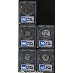 <B>1950 Proof Set PR64 to PR66 PCGS.</B></I> The set includes: <B>Cent PR64 Red,</B></I> brick-red and gold color, small stains on the left reverse; <B>Nickel PR66,</B></I> beautiful sky-blue, gold, and apple-green colors; <B>Dime PR66,</B></I> freckles of mauve and tan patina; <B>Quarter PR66,</B></I> blushes of pale lilac patina grace this lovely premium Gem; and a <B>Half Dollar PR66,</B></I> nicely struck, light russet freckles along the reverse border.<BR><I>From The Dennis Gundy Collection.</B></I> 5 Coins <BR><BR><B>Important notice:</B> Heritage usually auctions material at the rate of 200-250 lots per hour. On some occasions eBay Live bid software or the Internet may not be able to keep up with the pace of the auction. We recommend placing a realistic absentee bid now as insurance to avoid disappointment. Occasionally the auctioneer may eliminate or reject an eBay Live bid, and the auctioneer may also reopen a lot after the close of the eBay live bidding (usually because we missed an audience bid), and may reject your bid even if it shows you as the winning bidder. By bidding via eBay Live, you agree that Heritage may award the lot to another bidder at its sole discretion under the circumstances described above or any other reasonable circumstances. Since eBay bids are not shown to us until we open the lot on the floor, we treat those bids just like floor bids. In most cases the floor responds before the eBay bid is presented to us, due to Internet lag time, so for consistency we have made it a policy that floor bids are always considered first over tie eBay live bids. Also please note that all Heritage lots purchased through eBay Live carry a 20% Buyer's Premium. Please make sure you read the Terms and Conditions before you bid. </span></font></tr></table></td></tr></table>