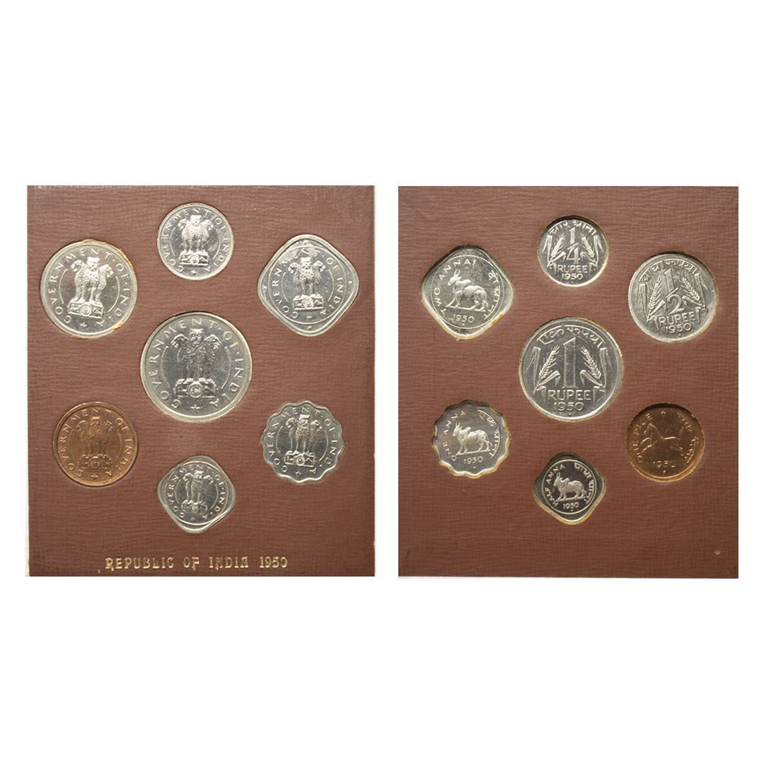 1950, Proof Set, Rupee, 1/2 Rupee, 1/4 Rupee, 2 Annas, 1 Anna, 1/2 Anna & 1 Pice