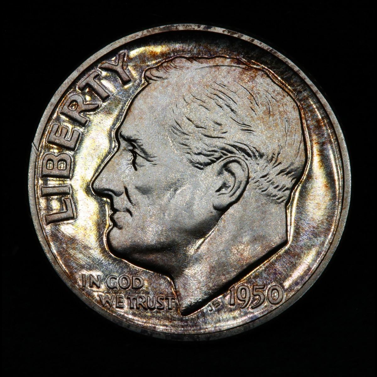 1950 Roosevelt Dime 10c Grades GEM+ Proof Cameo.