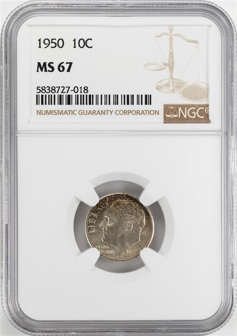 One 1950 Roosevelt Dime Coin NGC MS67. NGC Certified.