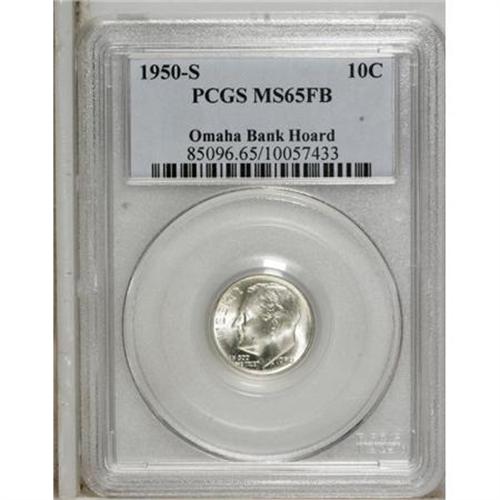 1950-S 10C MS65 Full Bands PCGS. Ex: Omaha Bank Ho