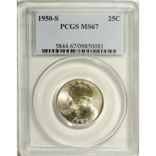 1950-S 25C MS67 PCGS. Solidly struck and highly lustro