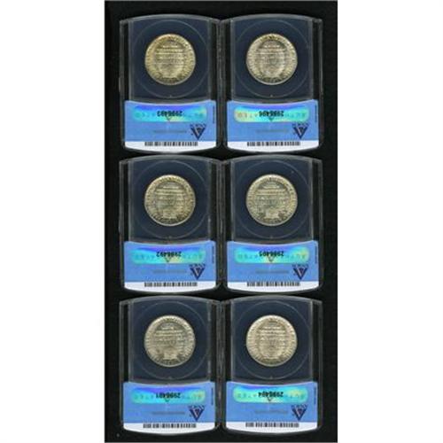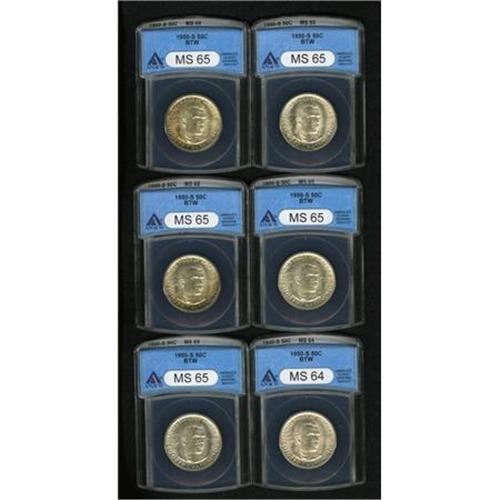 <B>(6)1950-S 50C Booker T. Washington. (1) MS64, (5) MS65; all graded by ANACS. </B></I><BR><I>From The Frank DuVall Collection of U.S. Commemoratives.</B></I><BR><BR><b>Shipping:</b> Coins & Currency (<a target="_blank" href="http://www.heritageauctions.com/common/shipping.php">view shipping information</a>)