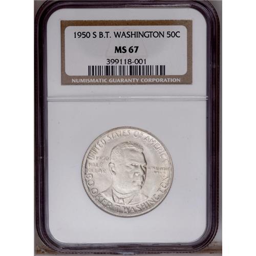 1950-S 50C Booker T. Washington MS67 NGC. Dazzling lus 1950-S[50C] Booker T. Washington MS67 NGC.
