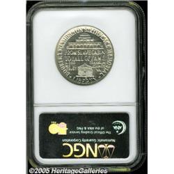 <B>1950-S 50C Booker T. Washington MS67 <img border='0' src='http://www.heritagecoins.com/images/star.gif' width=10 height=10> NGC.</B></I> Sharply struck, with brilliant unmarked surfaces that display no mentionable marks. Population: 6 in 67 <img border='0' src='http://www.heritagecoins.com/images/star.gif' width=10 height=10>, 0 finer with star designation. (2/05).