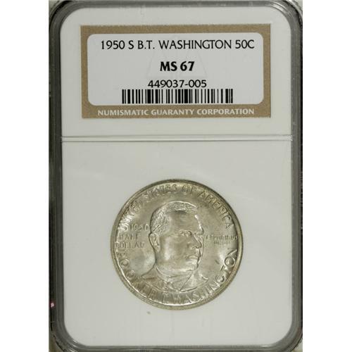 1950-S 50C Booker T. Washington MS67 NGC. Well struck