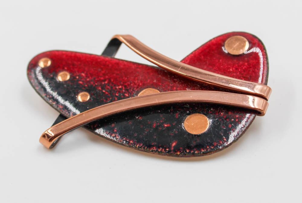 1950'S AMOEBA ATOMIC MATISSE ENAMEL COPPER BROOCH