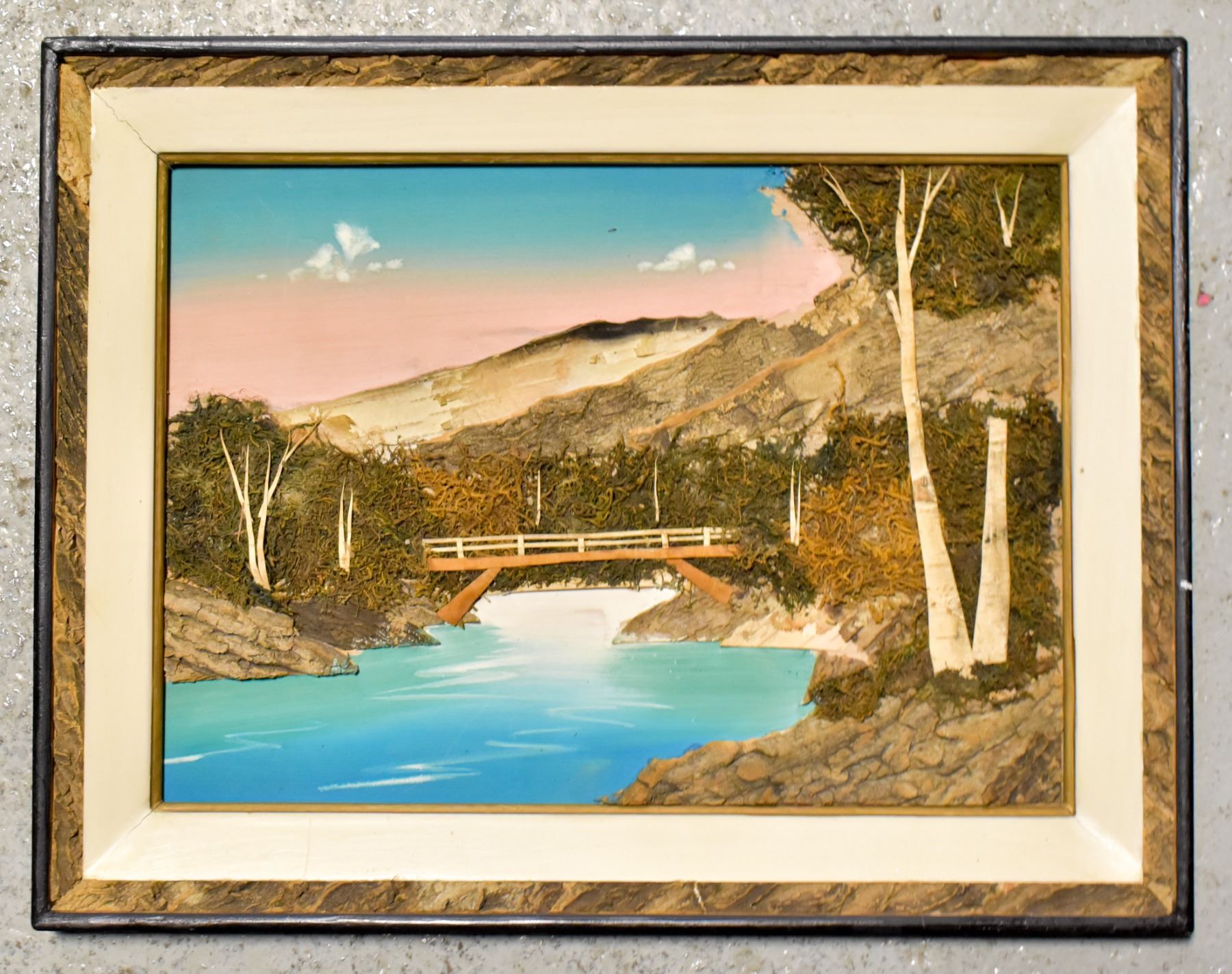 1950'S FRAMED HANDCRAFTED BARK PICTURE